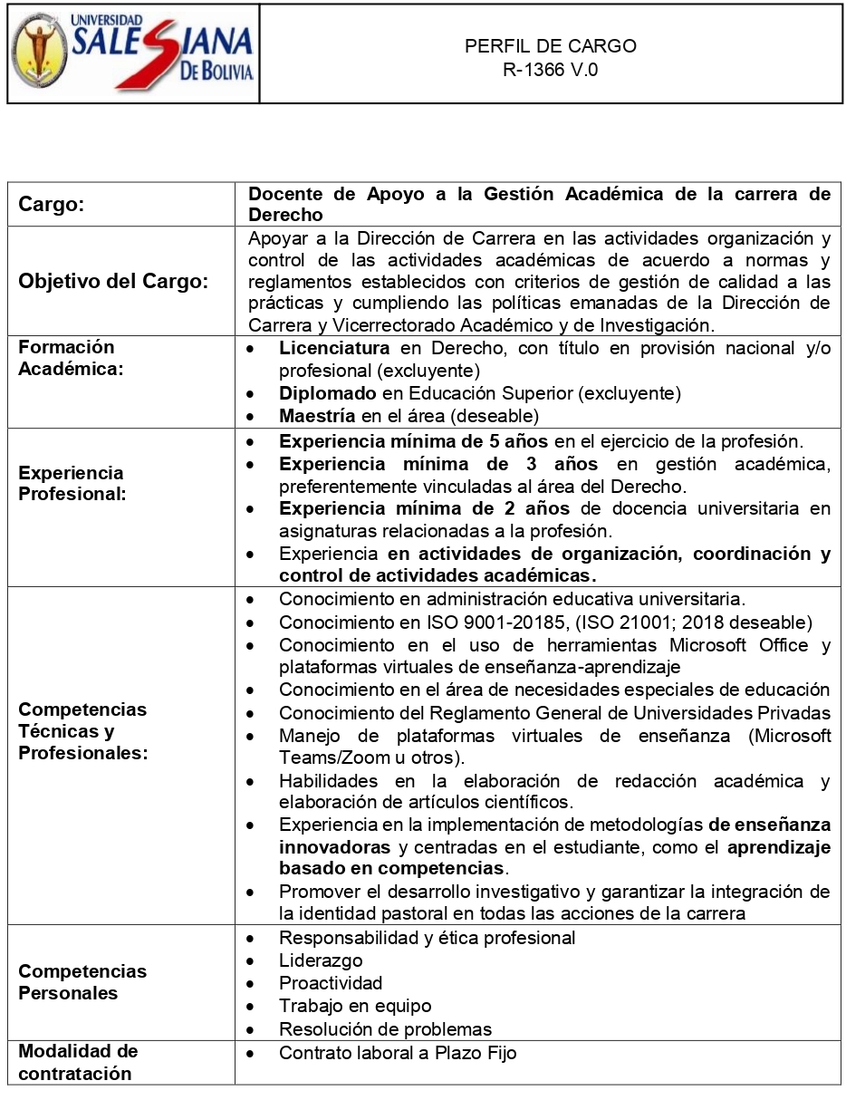 DOCENTE DE APOYO A LA GESTIÓN ACADÉMICA DE LA CARRERA DE DERECHO