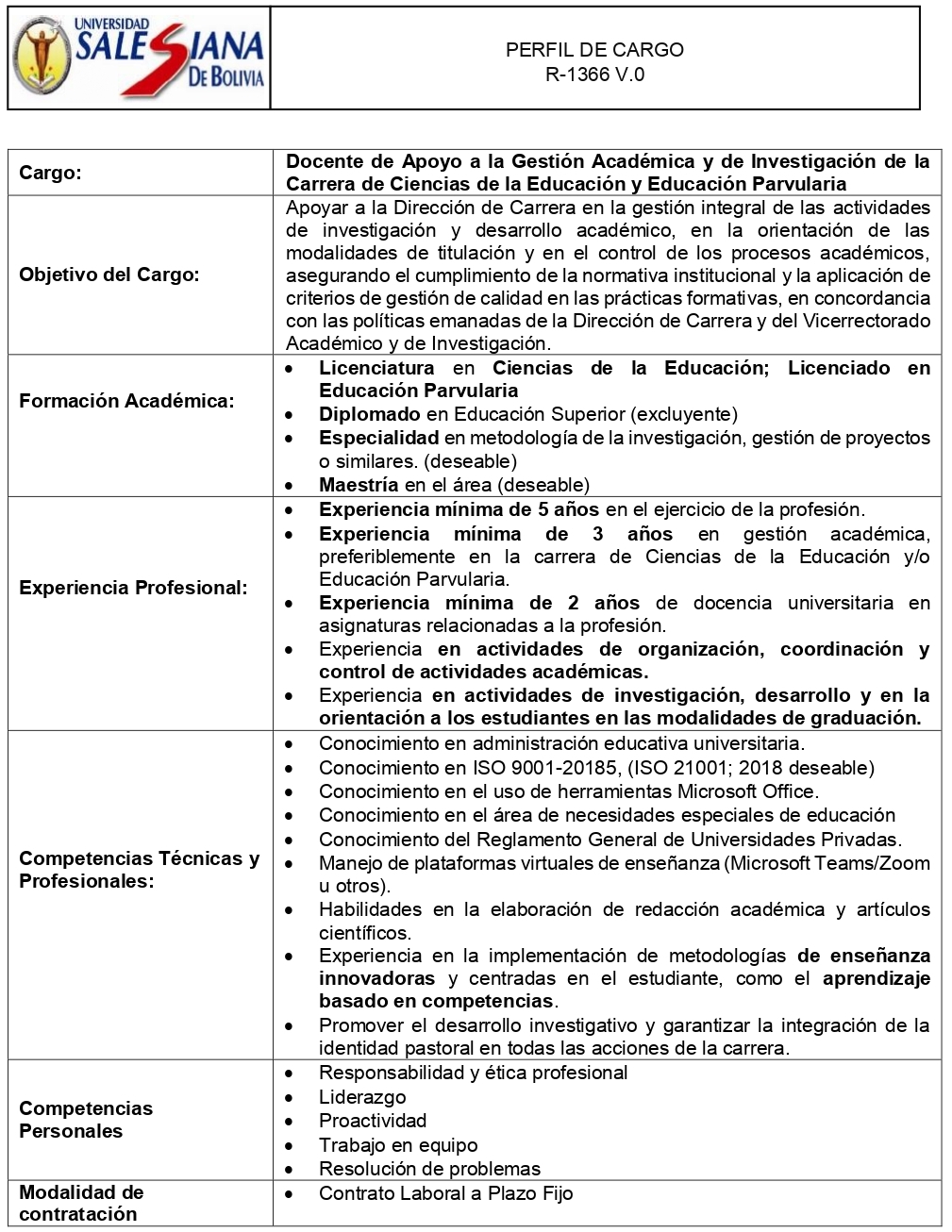 DOCENTE DE APOYO A LA GESTIÓN ACADÉMICA Y DE INVESTIGACIÓN DE LA CARRERA DE CIENCIAS DE LA EDUCACIÓN Y EDUCACIÓN PARVULARIA