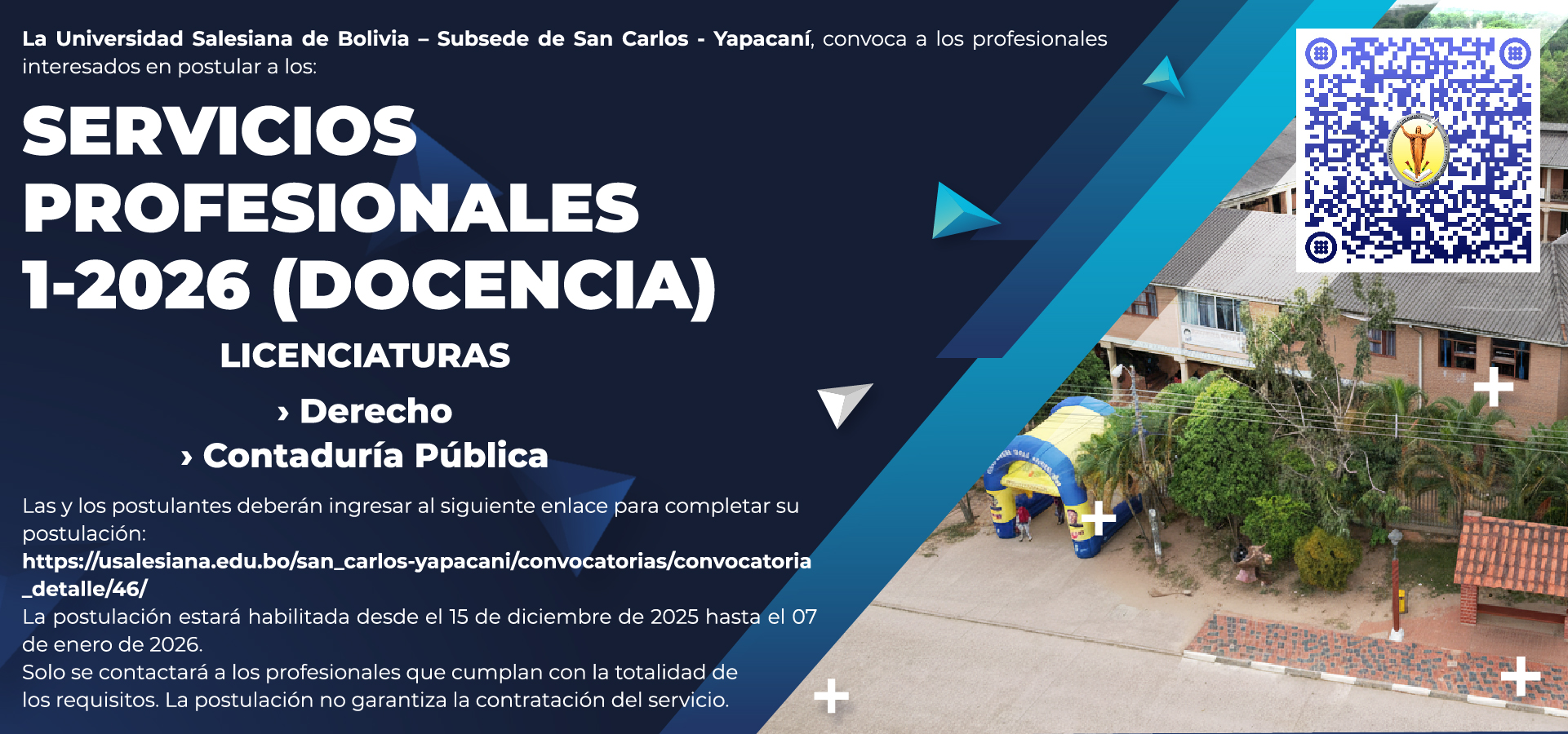 SAN CARLOS-YAPACANÍ – SERVICIOS PROFESIONALES 1–2026 (DOCENCIA)